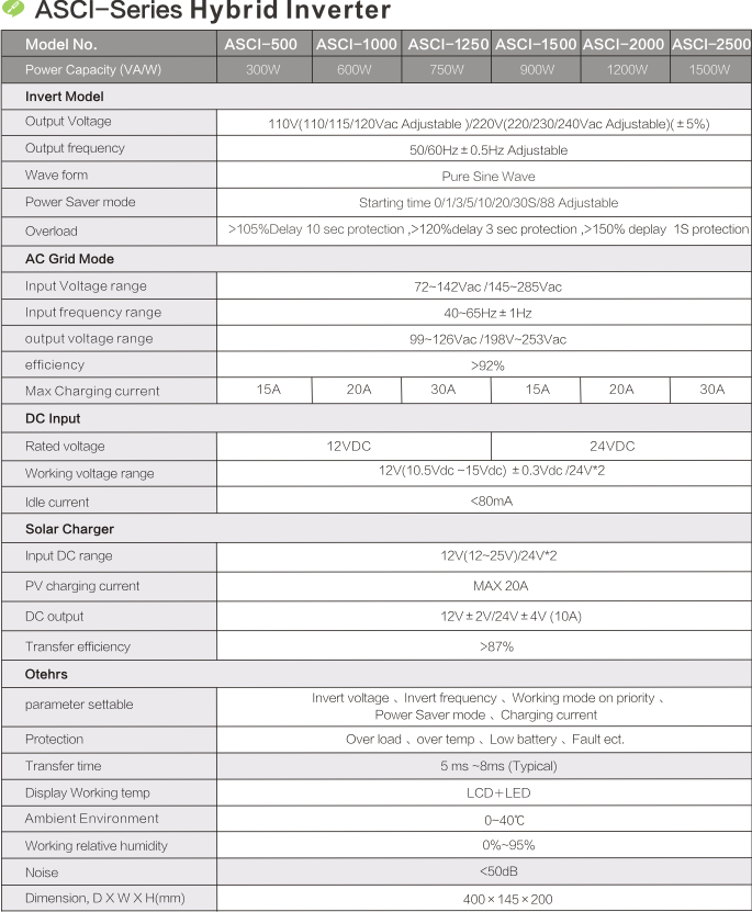 ASCI系列是專業離網太陽能發電系統解決方案,集智能逆變器和太陽能充電控制器于一體.